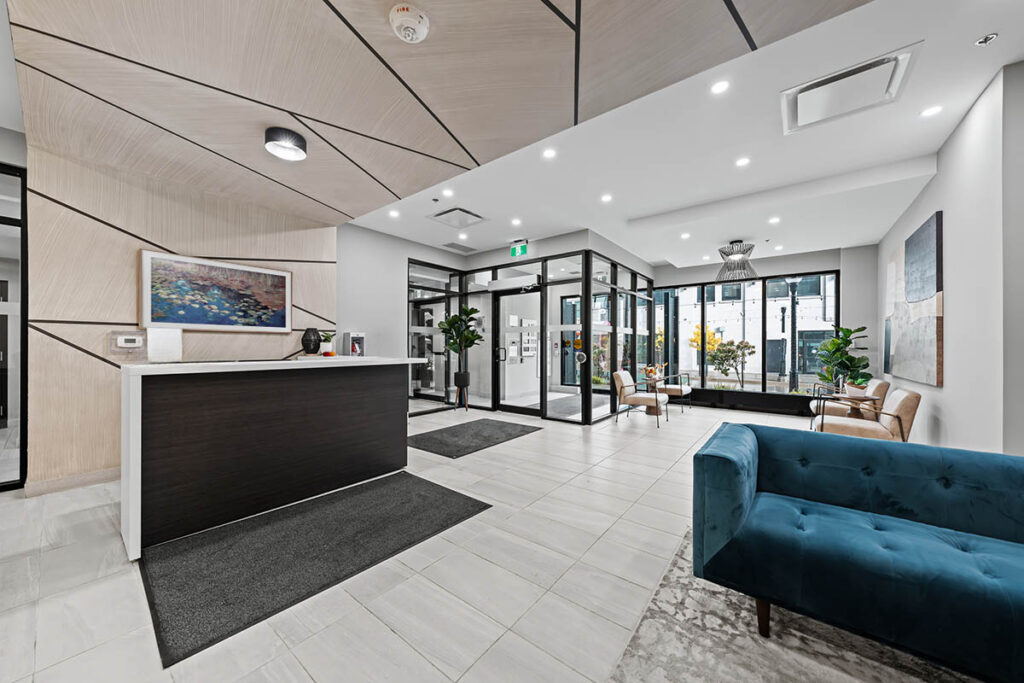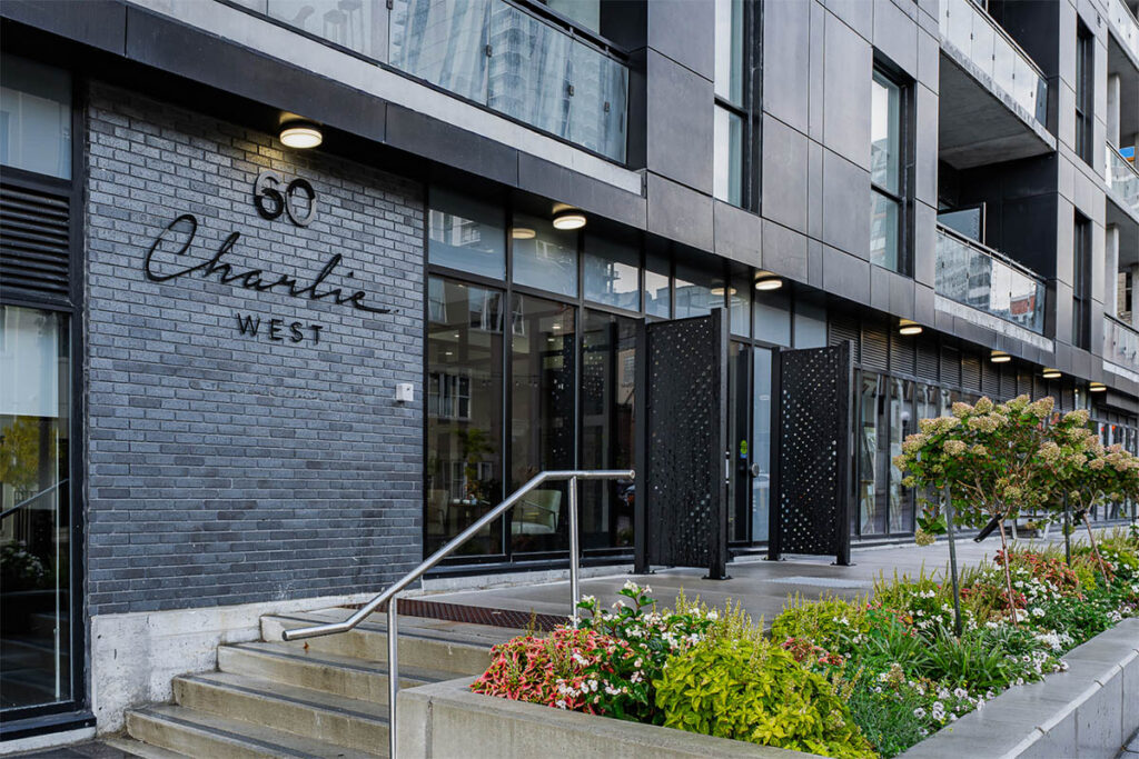 Out front, Charlie West’s own streetscape extends the same energy. The entrance blends decorative paving, planters, and bench seating with a striking mural on the exterior wall. Every detail contributes to what makes Charlie West work so well downtown. It feels like part of the neighbourhood, not just another high-rise on the skyline.
