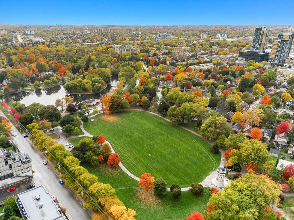 Downtown Kitchener is also home to Apollo Cinema, an independent theatre that screens cult classics, new releases, and community events, and the Berlin Tower ARTSPACE, which showcases rotating exhibitions from local and regional artists. Just down the street, Carl Zehr Square hosts seasonal festivals like the Christkindl Market, and Victoria Park offers green space, walking trails, and scenic water views — all within minutes of your front door.