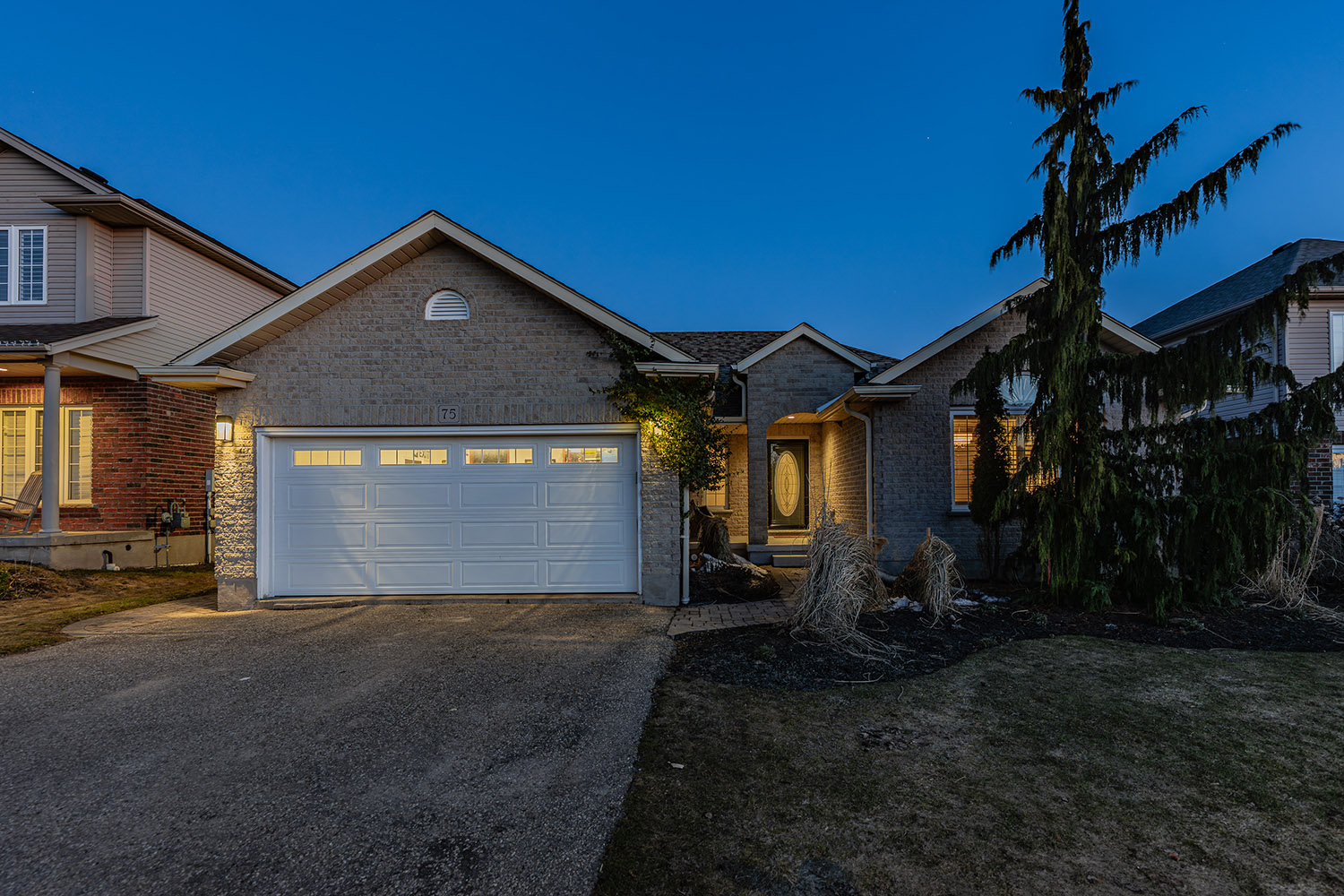 Exceptional executive bungalow offering 2,930+ SF of beautifully finished living space with 2+2 bedrms, 3 full bathrms, & a fully finished lower level with a private in-law suite-ideal for multi-generational living or extended family. This impressive home combines generous space, modern finishes, & a private setting in a quiet Baden neighbourhood. Located across from parkland with greenspace views, the home features a bright open-concept layout & spacious great rm with vaulted ceilings & laminate flooring. The updated kitchen offers quartz counters & backsplash, under-cabinet lighting, premium appliances, integrated dining area & bonus servery. Sliding doors lead to the back deck & private backyard. The primary suite features vaulted ceilings, dual closets including a walk-in closet, & a spa-like 5-pc ensuite with dual sinks, quartz counters & tub/shower combo. The main level also includes a second spacious bedrm, updated 4-pc main bathrm, & convenient laundry/mudrm with basement access & side entry to the garage. The finished lower level offers excellent additional living space with a private in-law suite featuring a kitchenette with appliances, stackable laundry area, 2 bedrms, full 4-pc bathrm, & lrg rec rm with tray ceiling-ideal for extended family or guests. Laminate & tile flooring, pot lights, designer light fixtures & custom window coverings are found throughout, along with many recent updates. Outdoor living is equally appealing with a private, fully fenced backyard surrounded by mature trees. The lrg deck is perfect for relaxing or entertaining & the yard includes a storage shed. Located on a quiet family-friendly street in the charming community of Baden, close to downtown shops, cafés & amenities. Just 10 minutes to Costco & The Boardwalk shopping district with restaurants, groceries & services. Rebel Creek Golf Club nearby with easy access to Waterloo, Kitchener & surrounding areas.